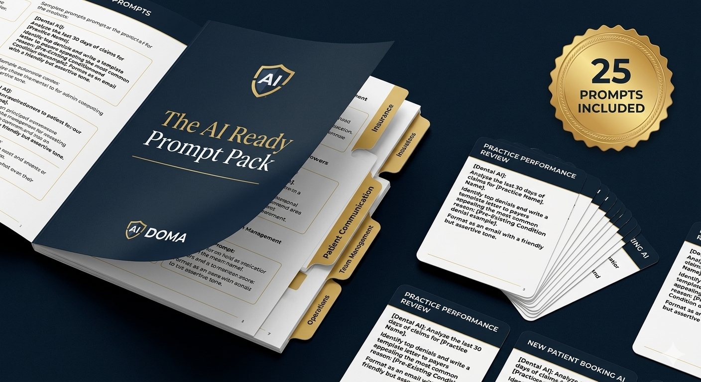 25 dental specific prompts organized by role and ready to use - Insurance appeals, patient communication, team management, and operations. Included with founding enrollment at no extra cost and unlocked in module 2.